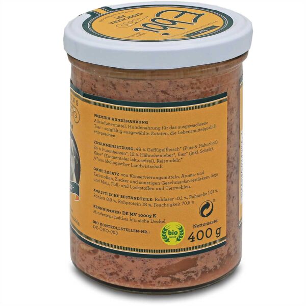 Eine leckere Carbonara, wer mag die nicht? Ebbi – Bio Carbonara Art ist unser Hundefutter mit dem speziellen Belohnungscharakter. Denn für gewöhnlich drehen Hunde regelrecht durch, wenn sie ein Stück Käse angeboten bekommen. Nicht umsonst wird Wurst oder Käse auch sehr gerne als Leckerli beim Training mit dem eigenen Vierbeiner verwendet, um etwas zu haben, bei dem der Wille des Tieres entsprechend gesteigert wird. Ebbi – Bio Carbonara Art bringt diesen Gedanken mit in ein Alleinfuttermittel für Hunde.