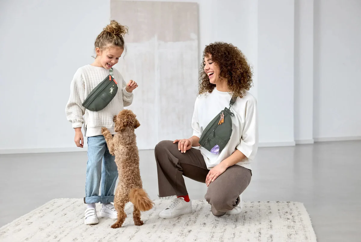 Mit dem Leckerlibeutel Mini Enja für Kinder und dem Leckerlibeutel Emma für Erwachsene von PALOPA sind Groß und Klein im Partnerlook unterwegs. So können die Kids von den Großen lernen und Verantwortung für die Vierbeiner übernehmen.